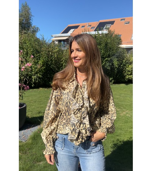 Ajouter au panier Liste de souhaits Chemise Léo Prix 80,00 CHF Chemise mi-longue en coton, imprimé léopard dans les tons de beige, crème et noir. Col chemise. Elle est accessoirisée de volants et boutonnée sur...