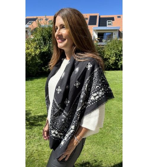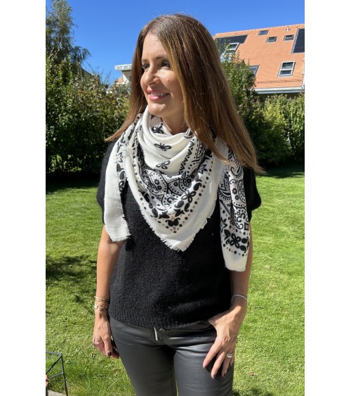 Ajouter au panier Liste de souhaits Carré bandana noir Prix 49,00 CHF Carré extrêmement doux en maille fine. Imprimé bandana, motifs gris et blanc sur fond noir. Finition frangée. Existe en noir Dimensions: 110 x...
