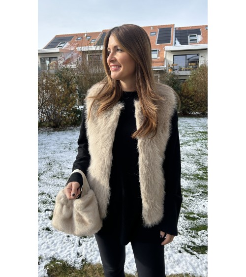 Nouveau Ajouter au panier Liste de souhaits Gilet Carla beige Prix 159,00 CHF Gilet chaud ultra doux au toucher et en fausse fourrure de très belle qualité avec des reflets dans les tons de beige. Grand col avec fermeture...