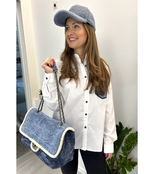 Casquette bleue au style très tendance. Elle est composée d'un tissu effet moutonné en bleu jeans. Un style incontournable qui vient accessoirisé vos tenues d'hiver. Convient aux petites et grandes têtes puisqu'elle est réglable au moyen d'un velcro.