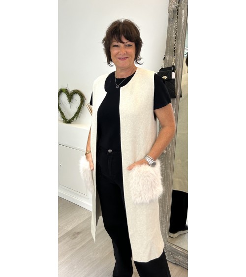 Nouveau Ajouter au panier Liste de souhaits Gilet Mila crème Prix 109,00 CHF Gilet mi-long tout doux et souple en viscose. Deux poches en fausse fourrure sur le devant. Sans manche et de coupe droite, il convient à toute...