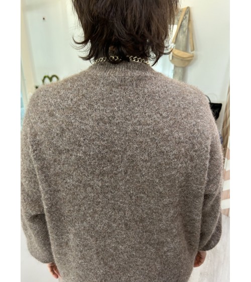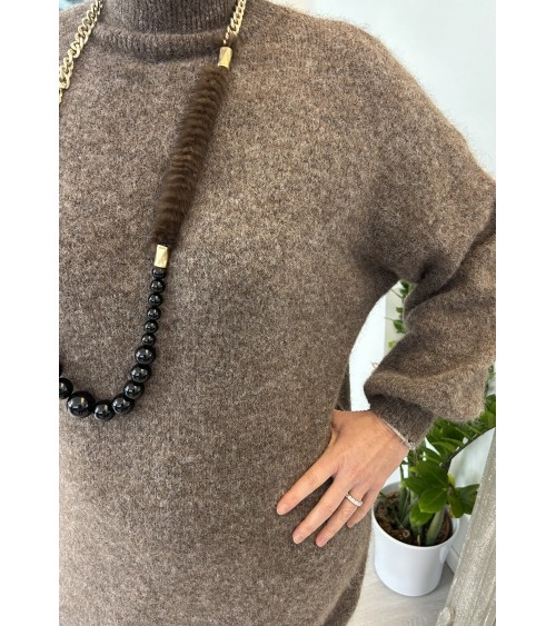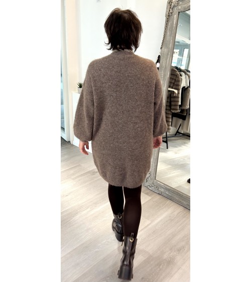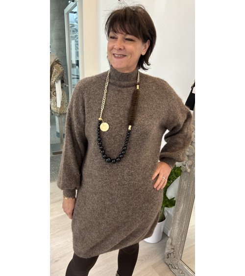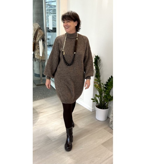 Robe chaude et toute douce en fine maille. Col montant et coupe droite légèrement oversize. Manches longues bouffantes resserrées en bord-côte aux poignets.