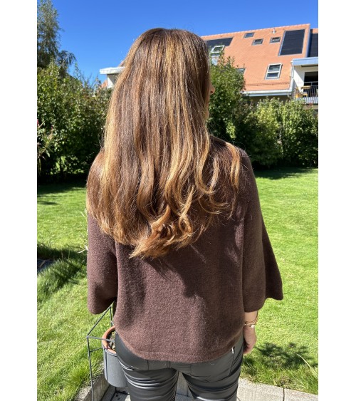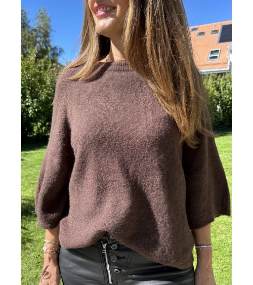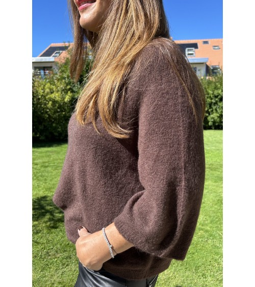 Pull tout doux, chaud et léger en fine maille tricotée. Encolure arrondie et coupe droite légèrement oversize. Emmanchure basse et manches 3/4. Bas du pull en finition bord côte.