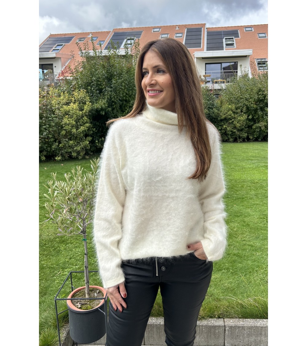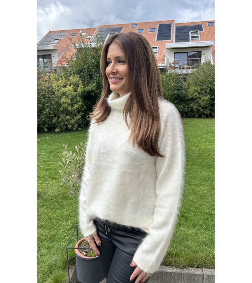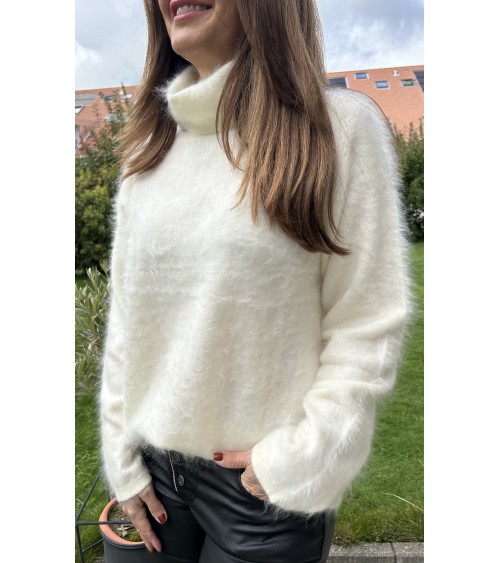 Pull extrêmement doux de qualité exceptionnelle en baby cachemire qui vous tiendra bon chaud! Un pull très cocooning, d'une douceur extrême, il est souple et léger.  Col roulé large et emmanchure basse. Coupe droite légèrement oversize et manches longues.